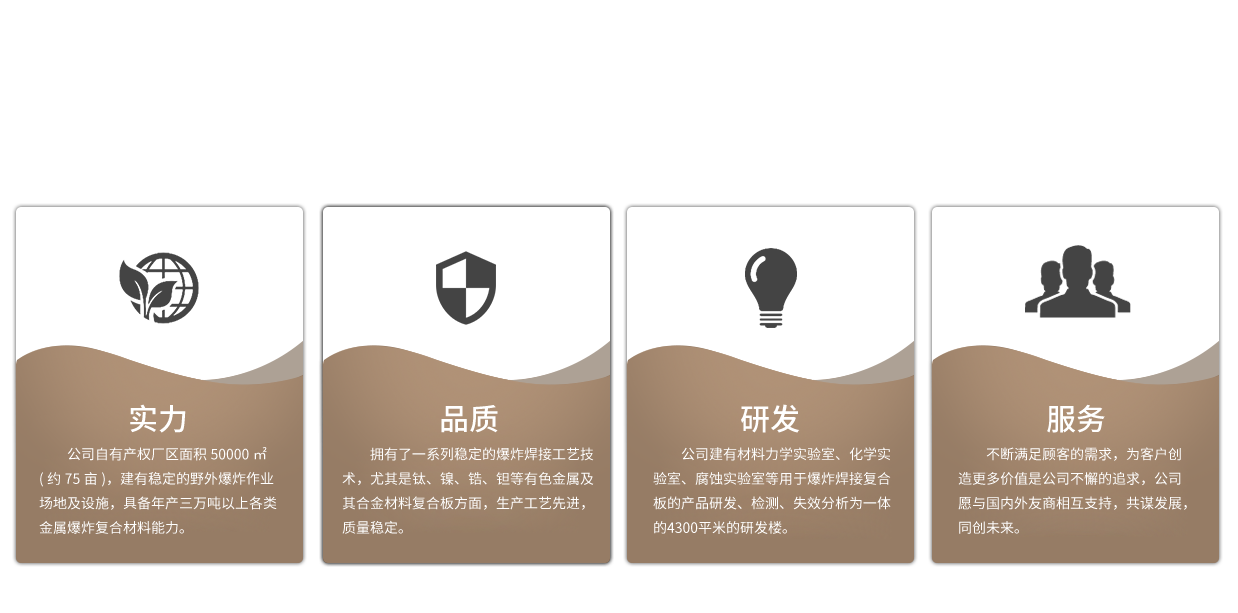 - 安徽弘雷金屬?gòu)?fù)合材料科技有限公司成立于2013年5月,坐落于宣紙之鄉(xiāng)—安徽省宣城市,專業(yè)從事各類金屬爆炸復(fù)合材料研發(fā)、生產(chǎn)、銷售和咨詢。注冊(cè)資本伍仟萬(wàn)元,自有產(chǎn)權(quán)廠區(qū)6萬(wàn)余平方米(約90畝),建有自有產(chǎn)權(quán)的野外爆炸作業(yè)場(chǎng)地及設(shè)施,具備年產(chǎn)四萬(wàn)噸以上能力。...